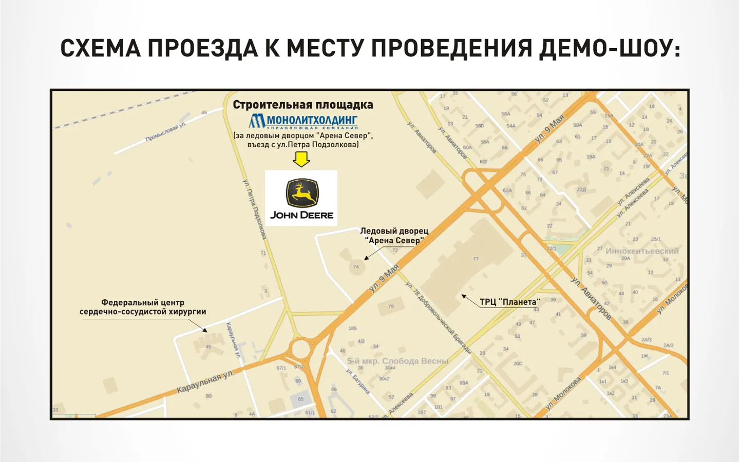 Компании John Deere и Тимбермаш Байкал при поддержке ООО «Монолитхолдинг» приглашают Вас посетить демо-шоу строительной техники John Deere.